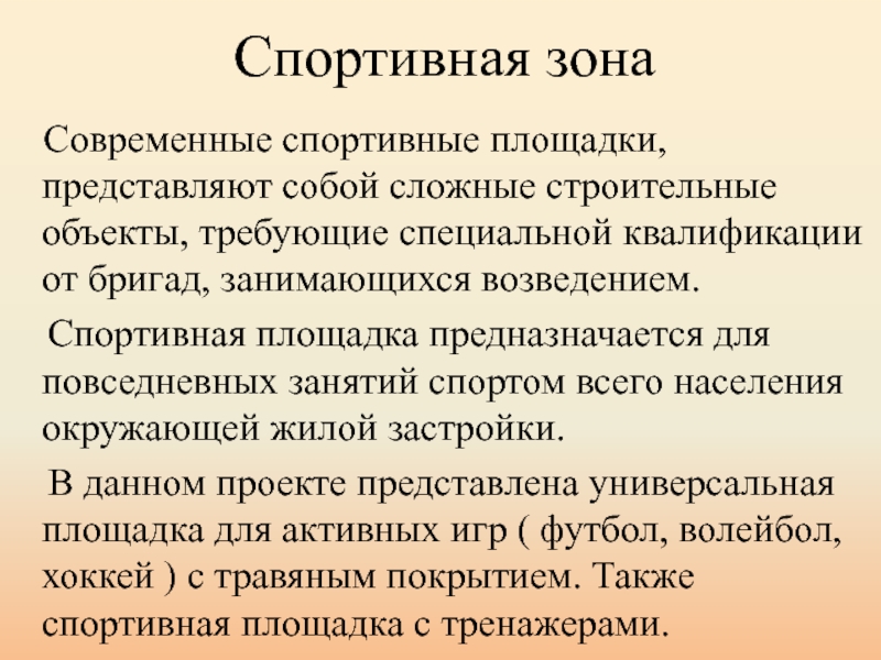 Спортивная площадка предназначается для повседневных занятий спортом всего населения окружающей жилой застройки.