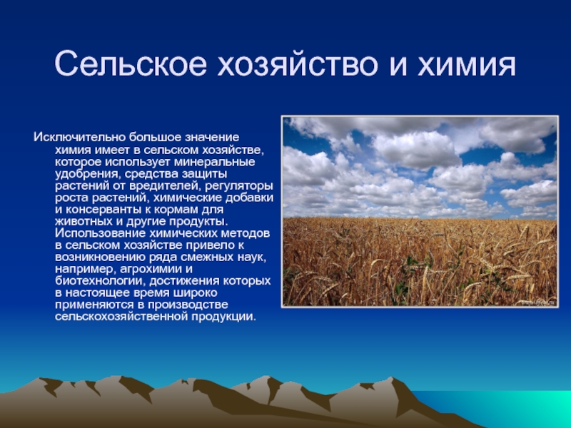 Исключительно большое значение химия имеет в сельском хозяйстве,