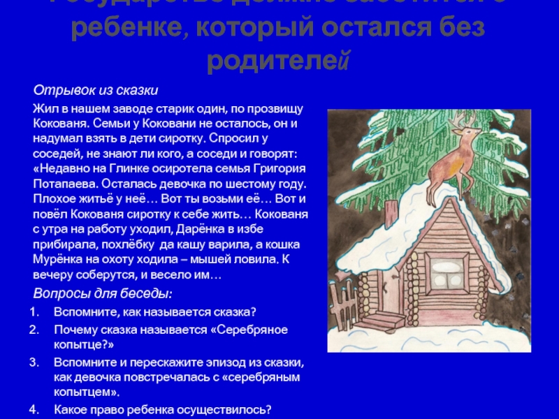 Слайд 19Государство должно заботится о ребенке, который остался без родителей