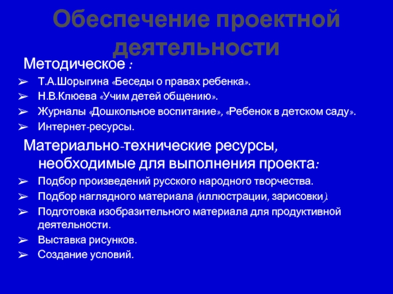Материально-технические ресурсы, необходимые для выполнения проекта: