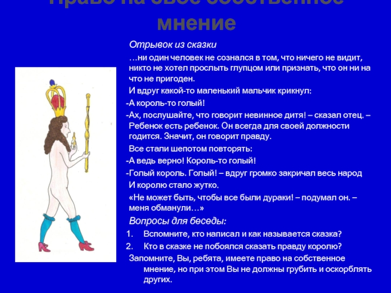 Запомните, Вы, ребята, имеете право на собственное мнение, но при этом Вы не должны грубить и оскорблять других.