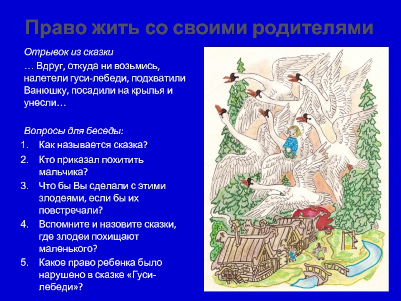 Какое право ребенка было нарушено в сказке «Гуси-лебеди»?