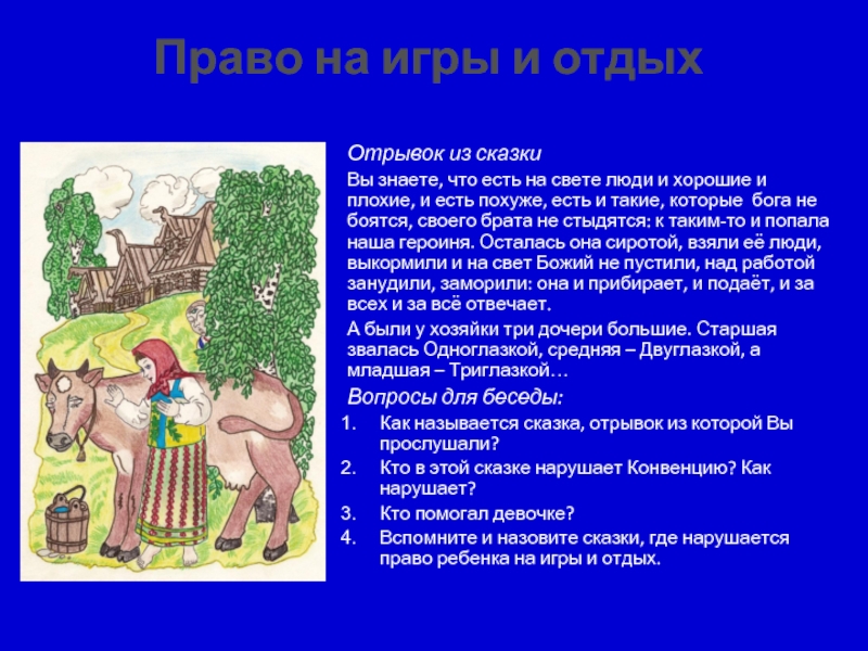 Вспомните и назовите сказки, где нарушается право ребенка на игры и отдых.