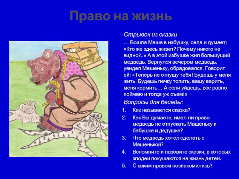 Как Вы думаете, имел ли право медведь не отпускать Машеньку к бабушке и дедушке?