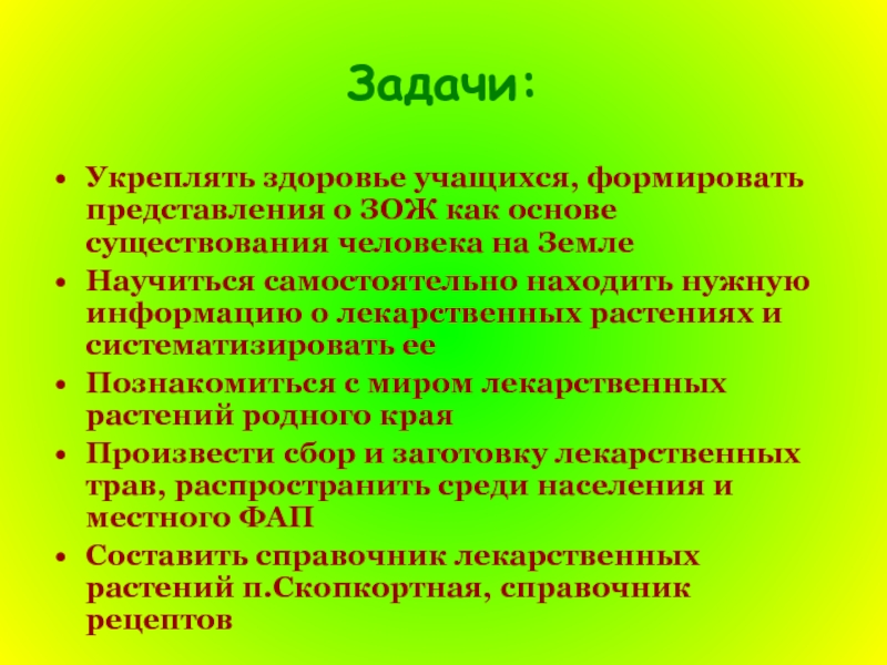 Создание справочника лекарственных растений п.Скопкортная, справочника рецептов