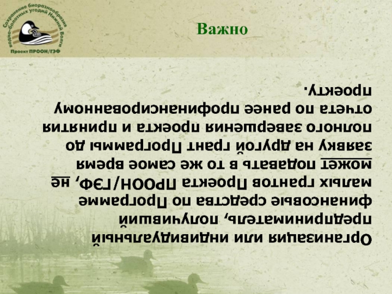 Могут претендовать: частные предприниматели, ООПТ, коммерческие и некоммерческие организации, образовательные и культурные учреждения проектного региона, имеющие специальные знания и опыт в соответствующих областях.