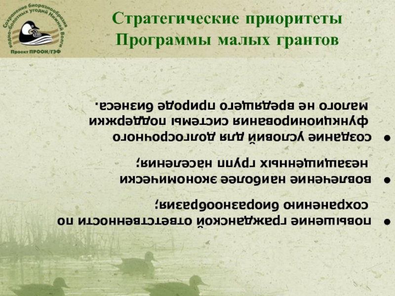Слайд 9Стратегические приоритеты Программы малых грантов