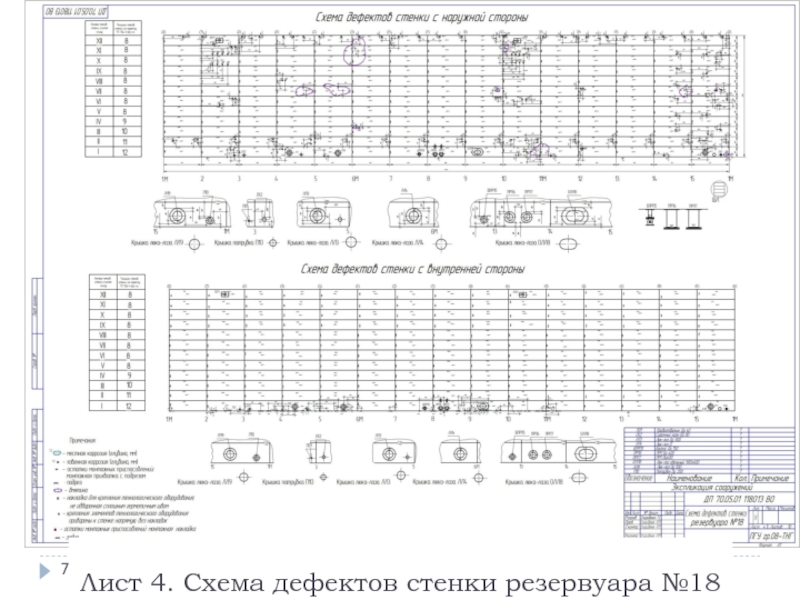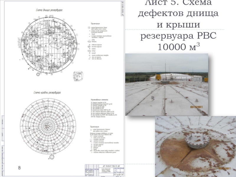 Лист 5. Схема дефектов днища и крыши резервуара РВС 10000 м3
