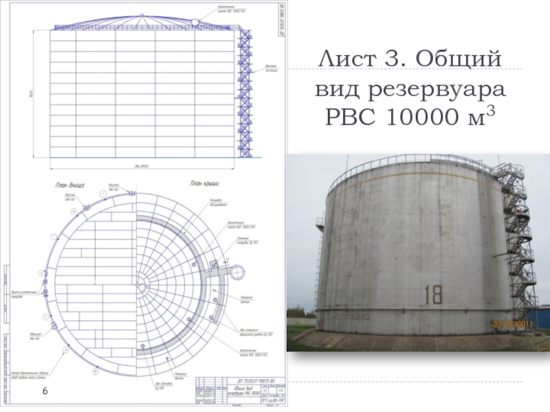 Слайд 6Лист 3. Общий вид резервуара РВС 10000 м3