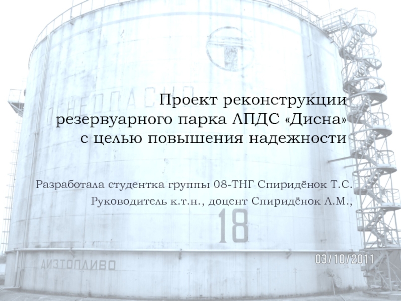 Слайд 1Проект реконструкции резервуарного парка ЛПДС «Дисна» с целью повышения надежности