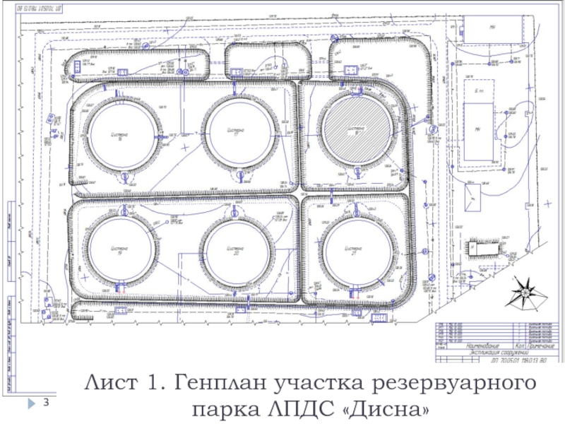 Слайд 3Лист 1. Генплан участка резервуарного парка ЛПДС «Дисна»