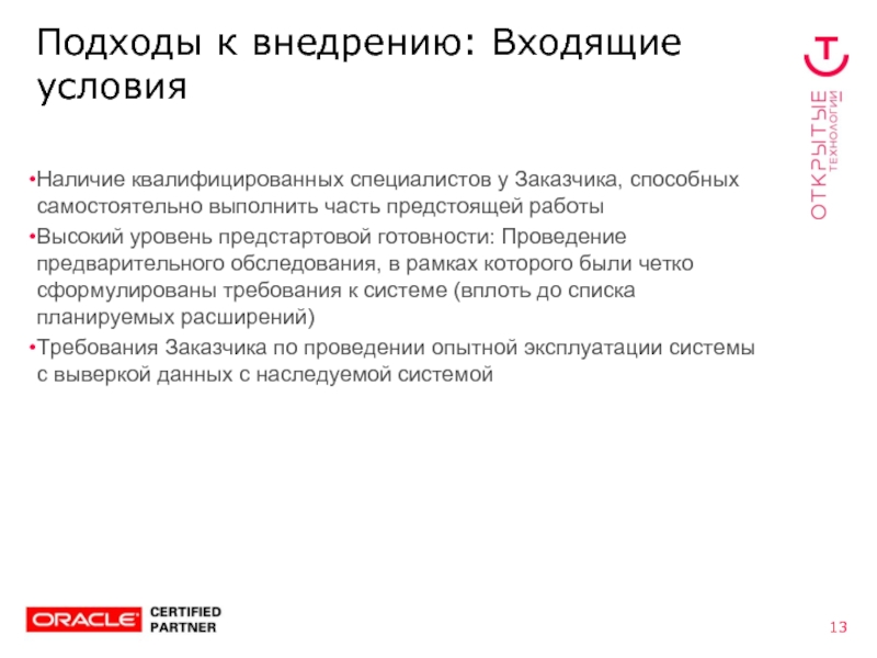 Наличие квалифицированных специалистов у Заказчика, способных самостоятельно