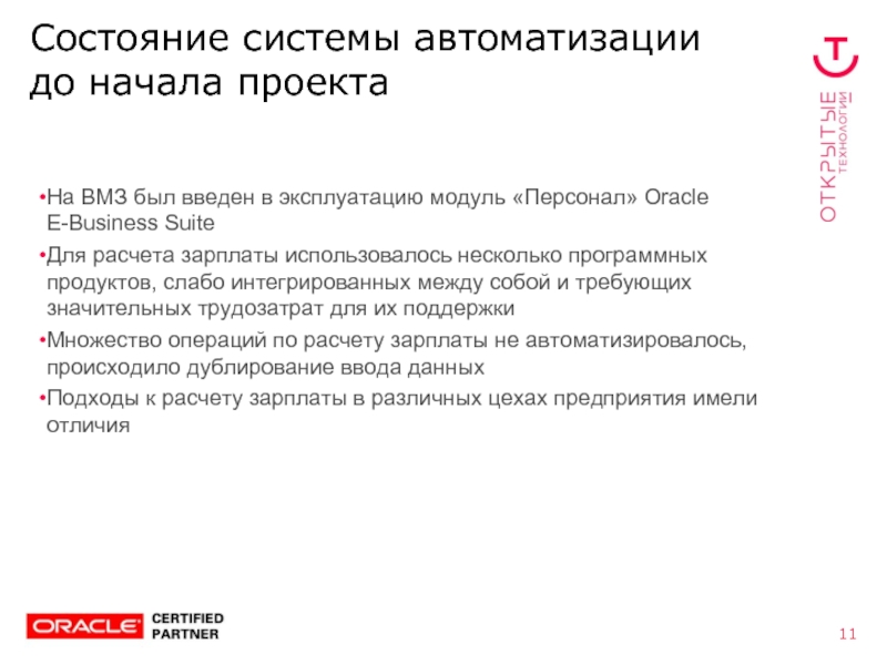 Слайд 9Проект внедрения модуля «Заработная плата» (Oracle Payroll)