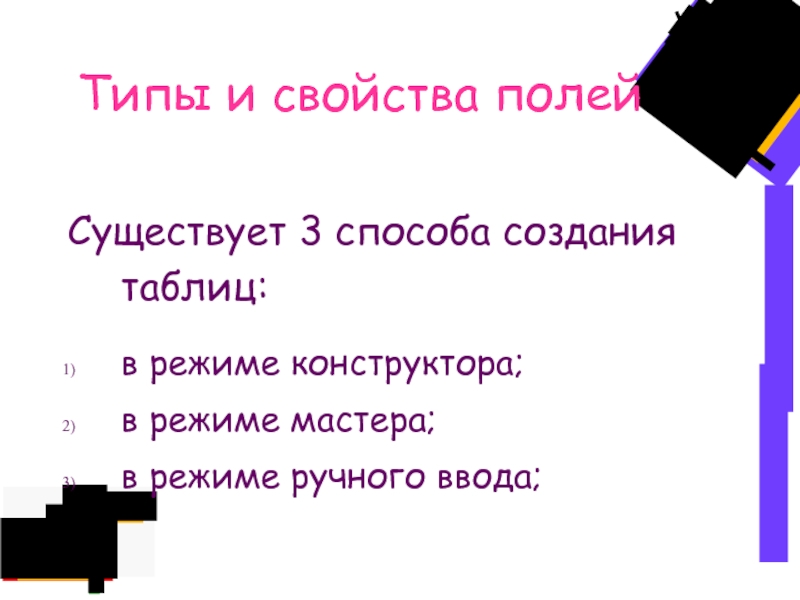 Для определения свойств поля используется бланк Свойства поля в нижней части окна конструктора таблиц.