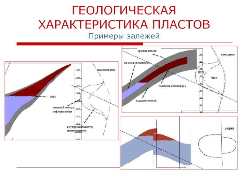 Очень сложного строения, для которых характерны как литологические замещения или тектонические нарушения, так и невыдержанность толщин и коллекторских свойств продуктивных пластов.