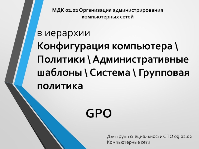 Конфигурация компьютера \ Политики \ Административные шаблоны \ Система \ Групповая политика