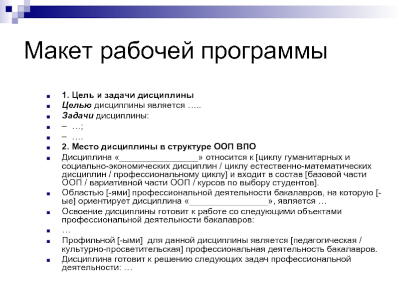 программе каждой дисциплины (модуля, курса) должны быть четко сформулированы конечные результаты обучения в соответствии с осваиваемыми знаниями, умениями и приобретаемыми компетенциями в целом по ООП.