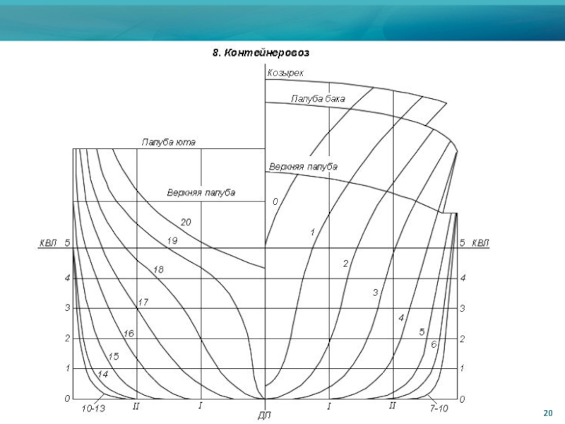 Окончательный вид общее расположение и эпюра емкости с экспликацией приобретают после завершения расчетов удифферентовки с положительными результатами, в процессе которых может потребоваться внесение изменений как в первоначальную схему деления корпуса на отсеки и цистерны, так и в расположение груза, запасов и балласта.