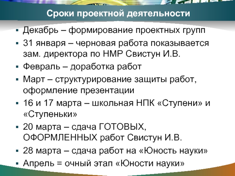 20 марта – сдача ГОТОВЫХ, ОФОРМЛЕННЫХ работ Свистун И.В.