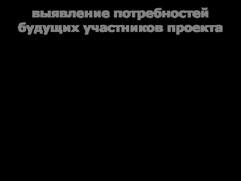 Слайд 4выявление потребностей будущих участников проекта