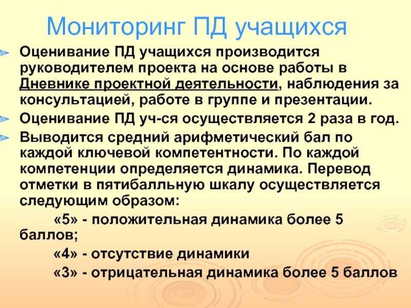 Оценивание ПД учащихся производится руководителем проекта на основе работы