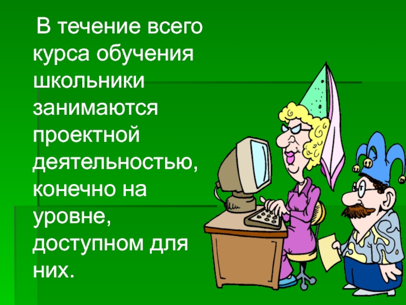 Слайд 19 В течение всего курса обучения школьники занимаются проектной деятельностью,