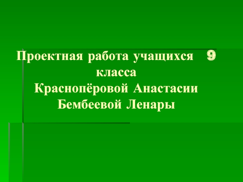 Слайд 1Проектная работа учащихся 9 класса