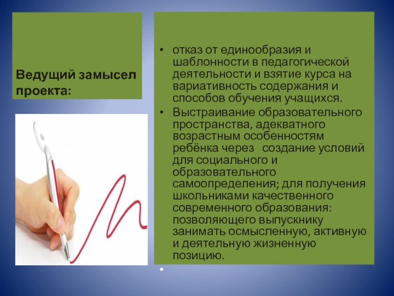 Выстраивание образовательного пространства, адекватного возрастным особенностям ребёнка через создание условий для социального и образовательного самоопределения; для получения школьниками качественного современного образования: позволяющего выпускнику занимать осмысленную, активную и деятельную жизненную позицию.