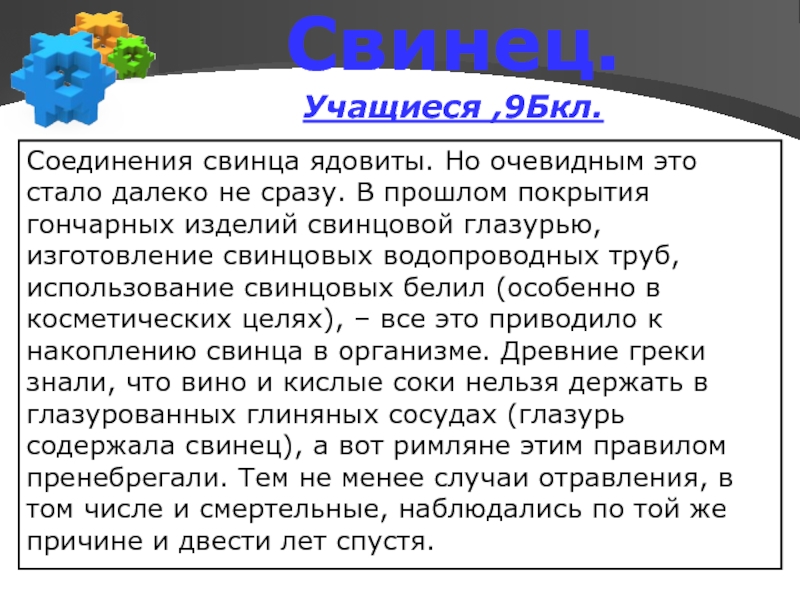 Слайд 10Свинец.