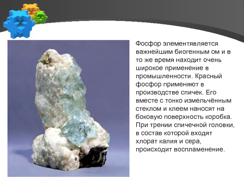 Слайд 15Фосфор элементявляется важнейшим биогенным ом и в то же время находит