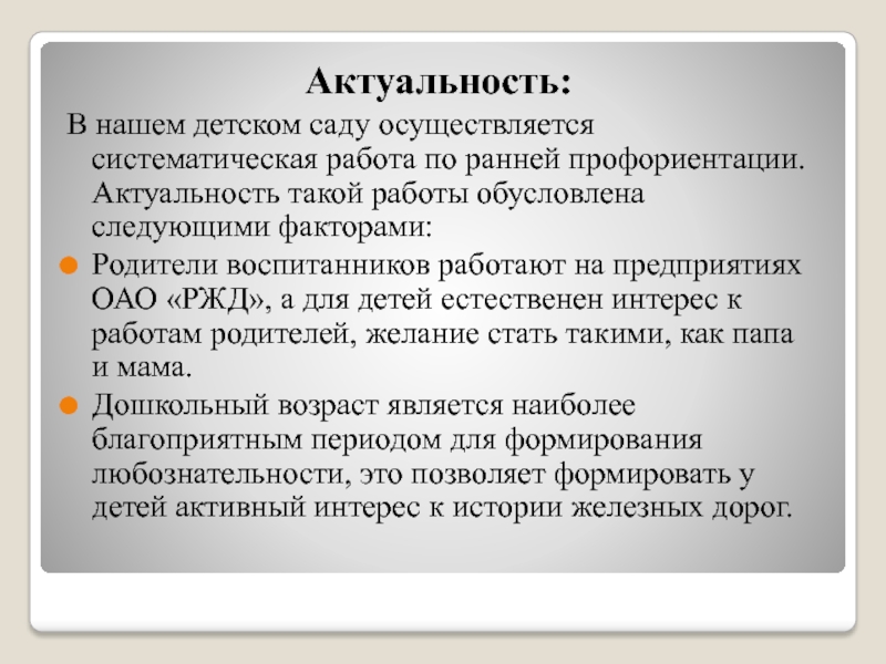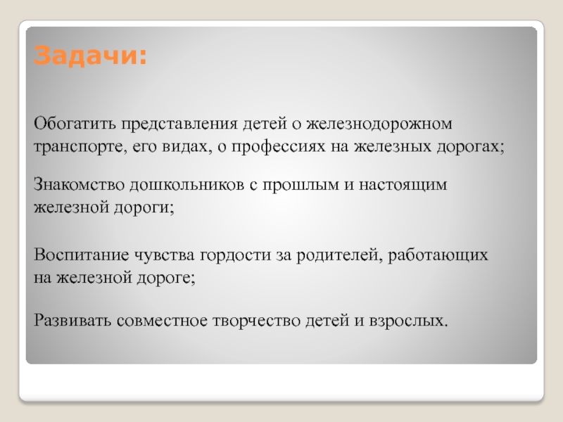 Знакомство дошкольников с прошлым и настоящим железной дороги;