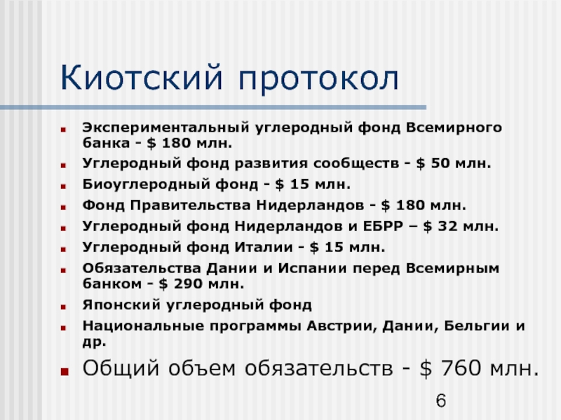 Экспериментальный углеродный фонд Всемирного банка - $ 180 млн.