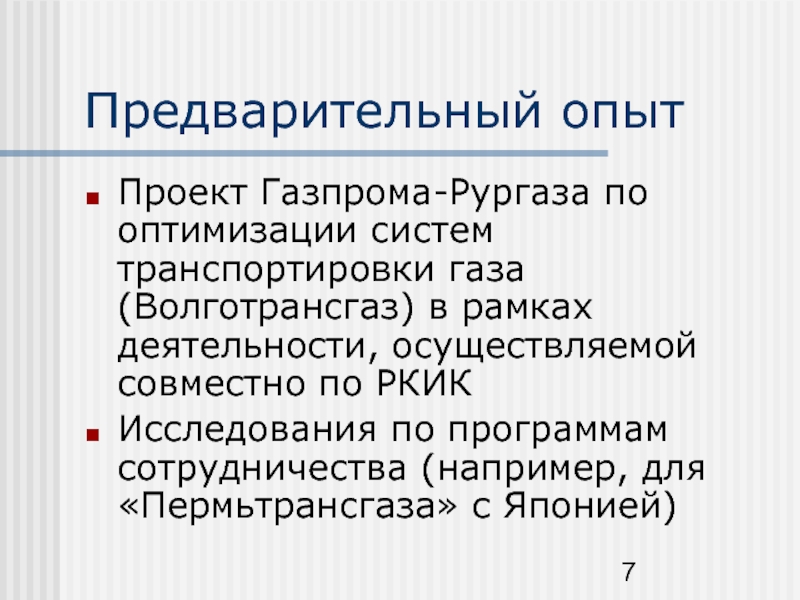 Исследования по программам сотрудничества (например, для «Пермьтрансгаза» с Японией)