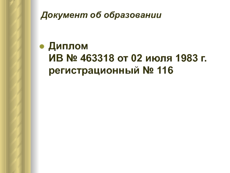 Образование - высшее. В 1983 году окончила факультет иностранных языков Марийского государственного педагогического института им. Н.К.Крупской по специальности английский и немецкий языки.