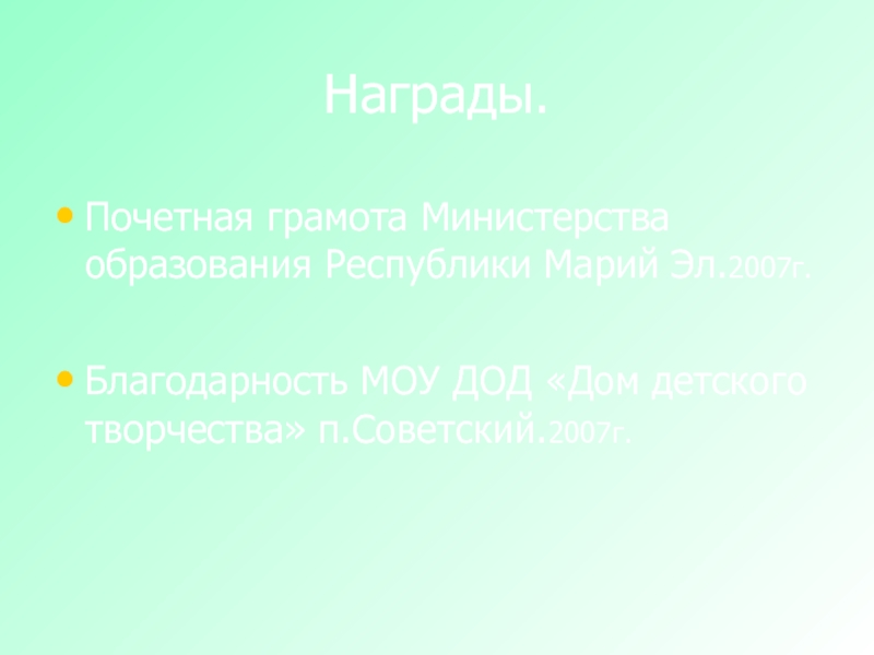 ГОУ ДПО «Марийский институт образования» по теме «Марийская национальная вышивка» с 9 января по11 января 2008г, 24ч.