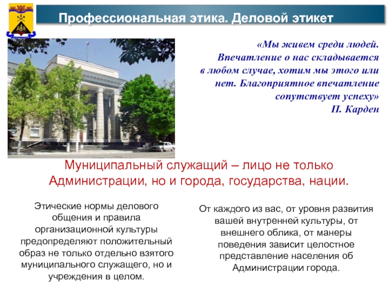 Муниципальный служащий – лицо не только Администрации, но и города, государства, нации.