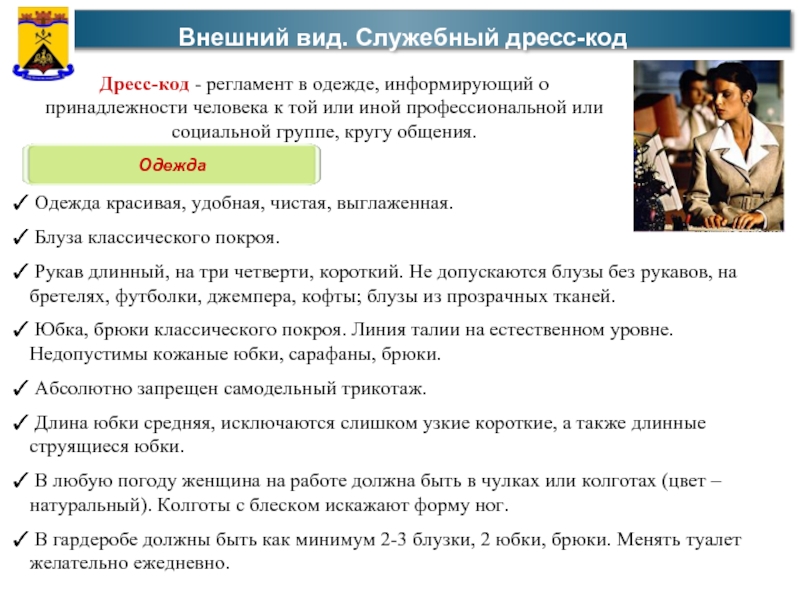Служебный дресс-код, аксессуары, украшения, головной убор, подарки, цветы, визитные карточки.
