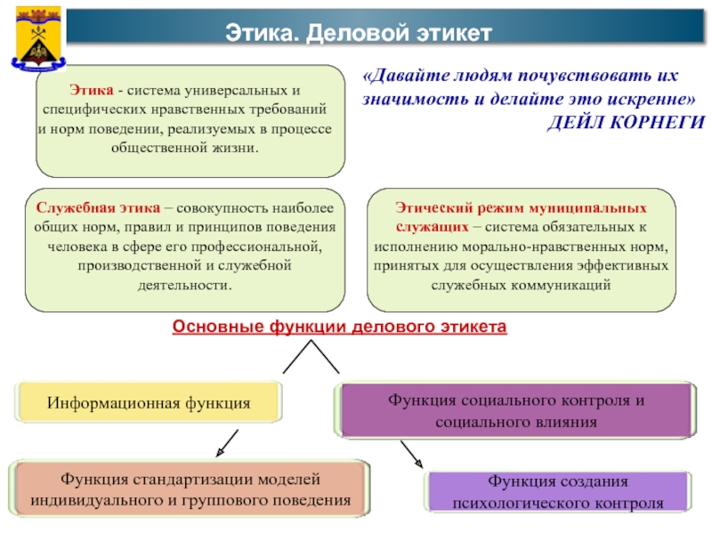 Этический режим муниципальных служащих – система обязательных к исполнению морально-нравственных норм, принятых для осуществления эффективных служебных коммуникаций