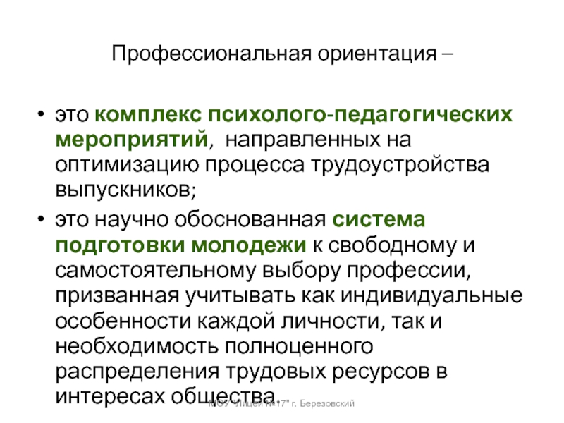 при ознакомлении с миром профессий, когда профессиональный выбор ещё не осуществлен