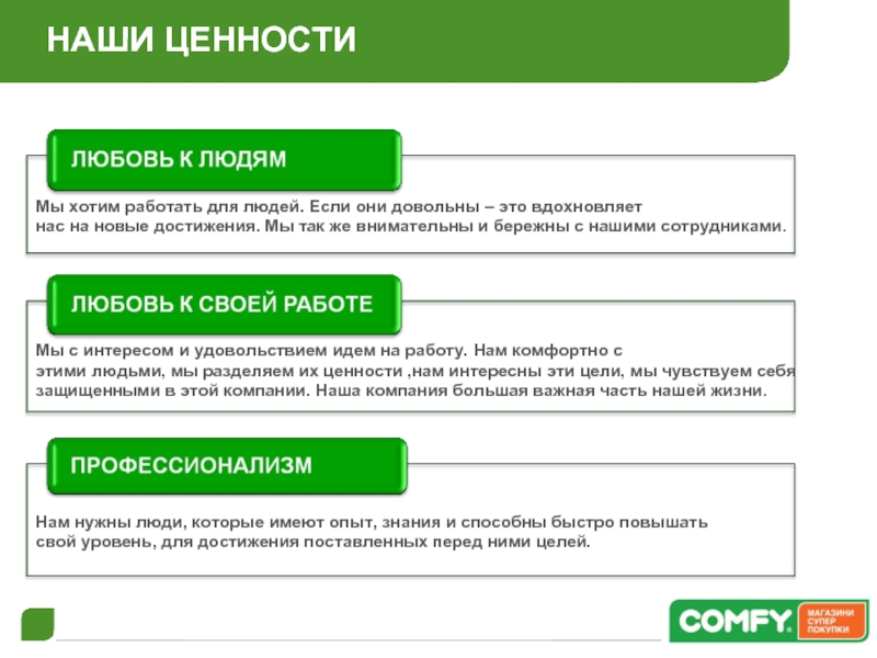 этими людьми, мы разделяем их ценности ,нам интересны эти цели, мы чувствуем себя защищенными в этой компании. Наша компания большая важная часть нашей жизни.