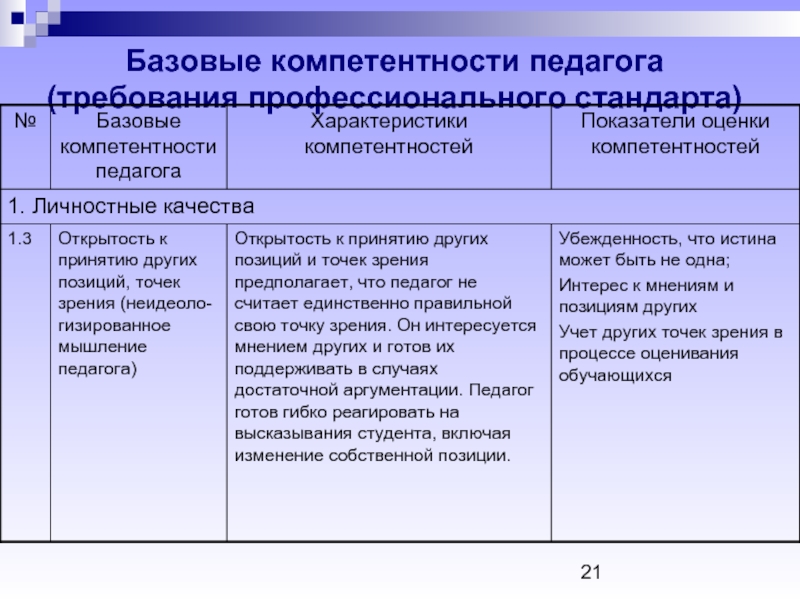 Слайд 21Базовые компетентности педагога (требования профессионального стандарта)