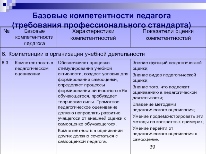 Слайд 39Базовые компетентности педагога (требования профессионального стандарта)