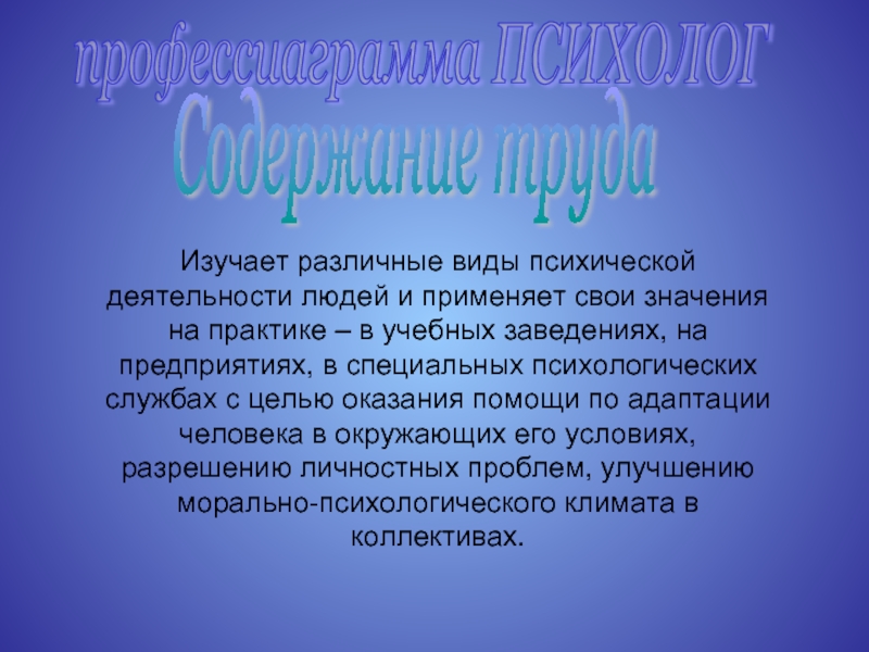 Слайд 4профессиаграмма ПСИХОЛОГ