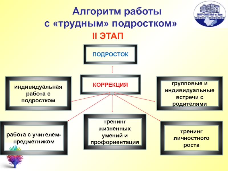 Работа направлена на достижение послушания, дисциплины, порядка. Из педагогических средств преобладают санкции, наказания, ограничения. Отсутствует индивидуальная и дифференцированная работа. Организация, формы и методы обучения не создают возможностей для успеха каждого подростка.
