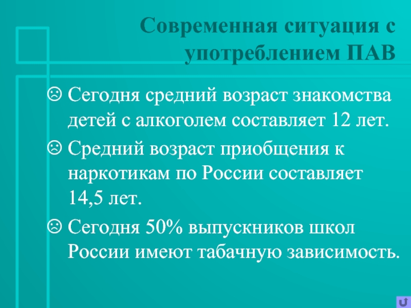 Слайд 2Сегодня средний возраст знакомства детей с алкоголем составляет 12 лет.