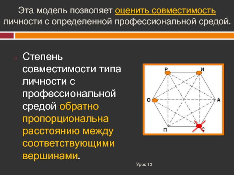 Слайд 8Эта модель позволяет оценить совместимость личности с определенной профессиональной средой.