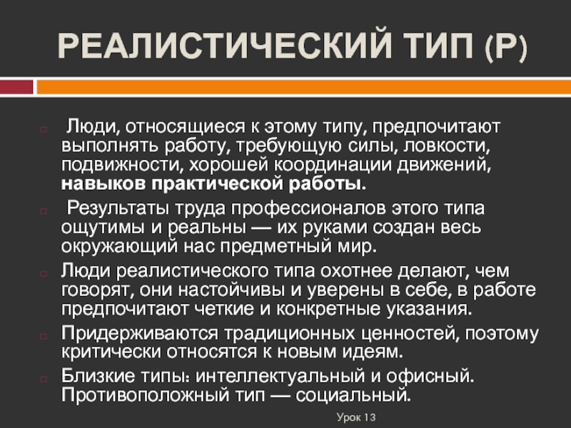 Слайд 15РЕАЛИСТИЧЕСКИЙ ТИП (Р)