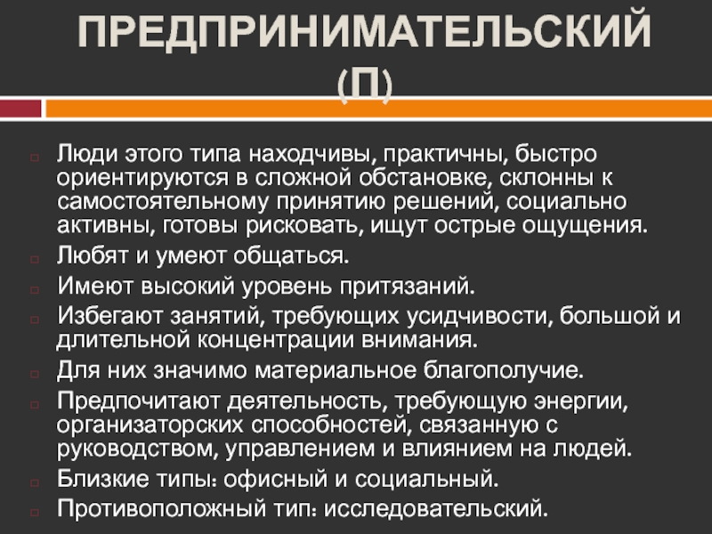 Слайд 19ПРЕДПРИНИМАТЕЛЬСКИЙ (П)