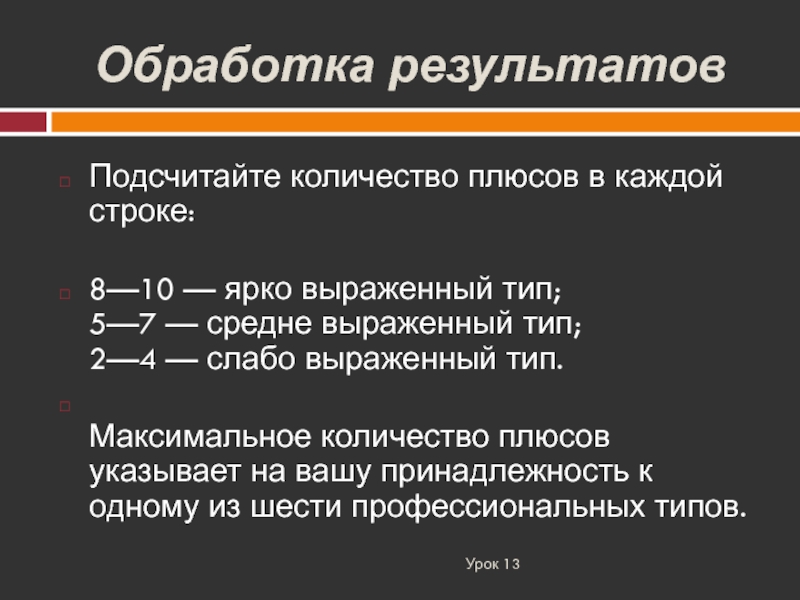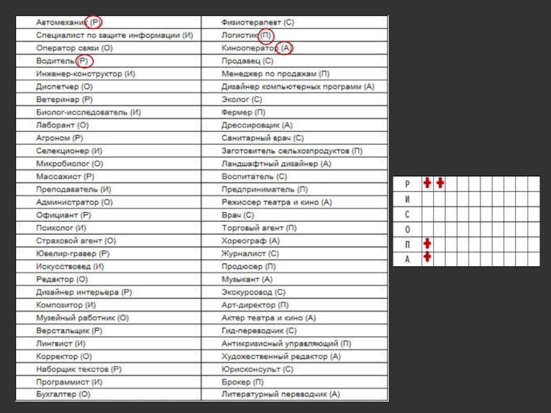 Максимальное количество плюсов указывает на вашу принадлежность к одному из шести профессиональных типов.
