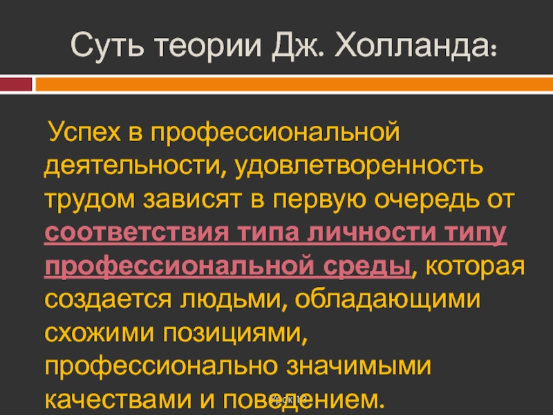 Слайд 10Суть теории Дж. Холланда: